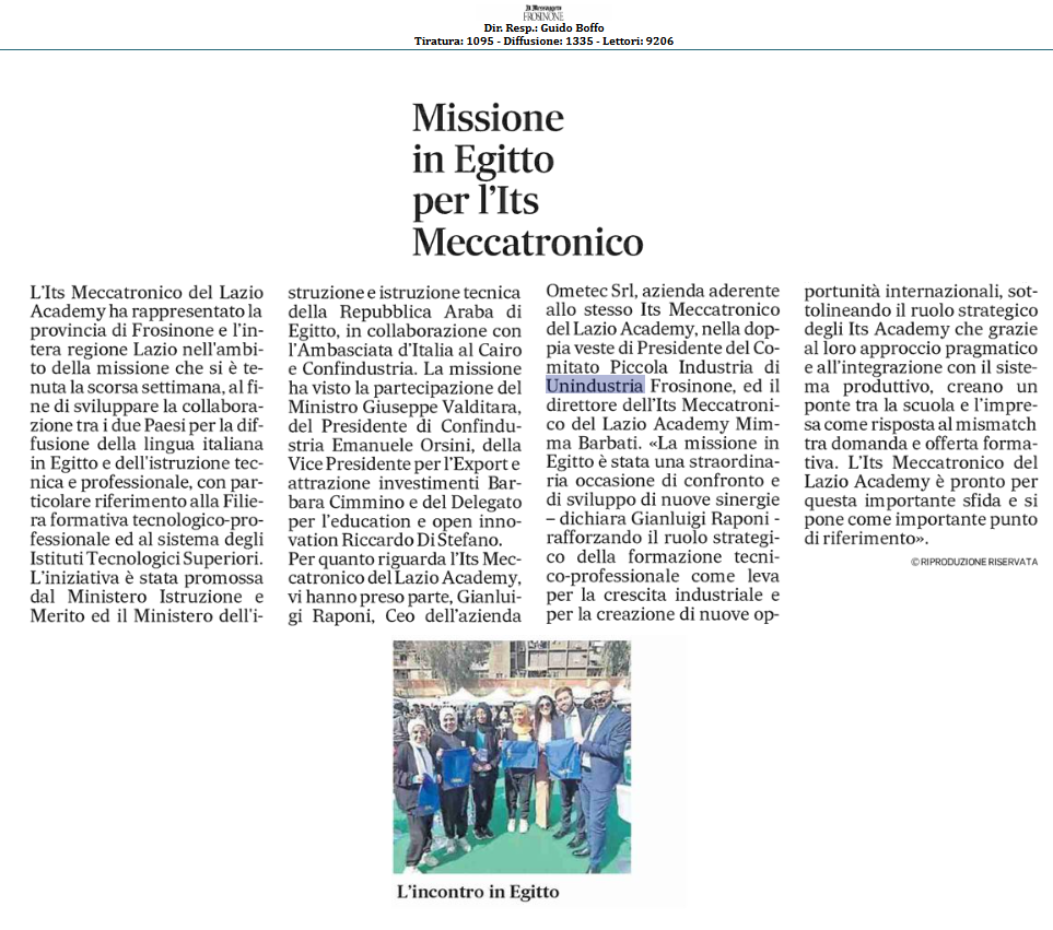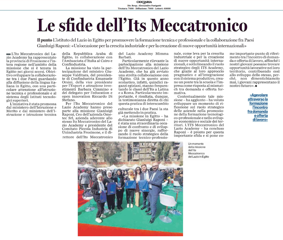 Missione Egitto per l’ITS Meccatronico del Lazio Academy